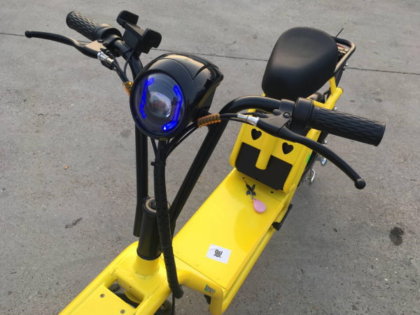 Ресурс акумулятора розрахований більш ніж на 1000 зарядів/ розрядів. Відзначимо, що запас ходу електроскутера на одному заряді без використання мускульної сили становить до 80 км. Такого пробігу цілком вистачить для доставляння в межах міста протягом усього робочого дня. Але купивши другу батарею ви збільшуєте свою подорож на скутері с педалями у два рази. Перевозиться запасна батарея в спеціальному багажнику в нижній платформі.