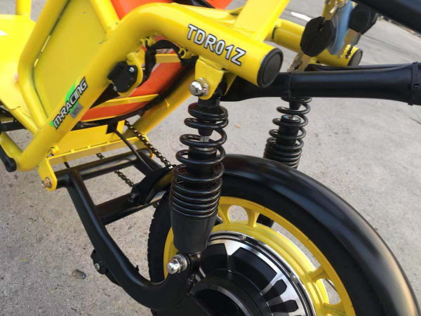 Скутер с педалями ElWinn Courier збирається на базі добре відпрацьованих та зарекомендованих велосипедних комплектуючих, що дозволяє домогтися мінімальної ваги електроскутера. Рама виготовлена зі сталевого каркаса і є однією з найлегших і надійніших у своєму класі. Підвіска подвійна гідравлічна вилка та задній пружинно-гідравлічний амортизатор. Колеса 12 дюймові, з універсальною гумою три дюйми. Передні та задні барабанні гальма з легкістю справляються з невеликою масою скутера.